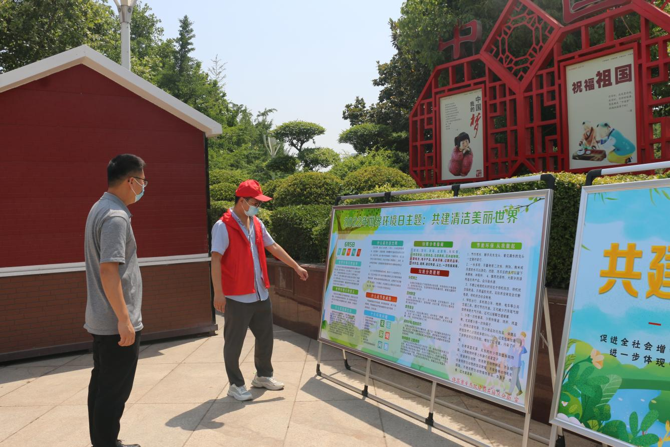 活動現(xiàn)場選在人流量較大的許都廣場,在擺放的宣傳展板前,身著紅色馬甲的志愿服務隊員用通俗易懂的方式向過往行人宣傳保護環(huán)境的重要意義,引導居民樹立愛護環(huán)境的理念。環(huán)保志愿者們重點向行人介紹了世界環(huán)境日的由來及意義、垃圾分類指南和原則等內容,響應市委市政府號召,倡導“無廢文化”,共建“無廢城市”。