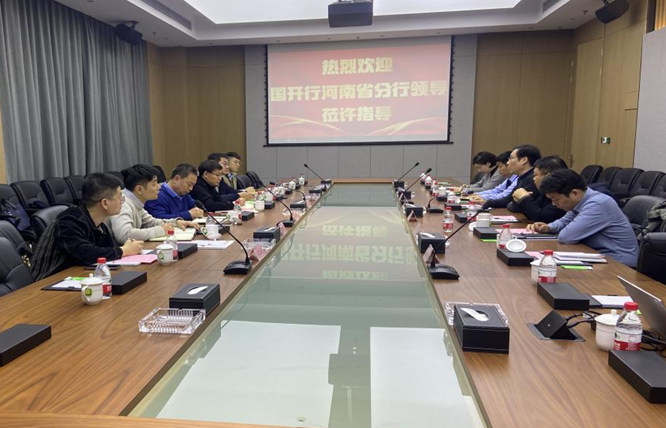 1月17日下午,國家開發(fā)銀行河南省分行客戶三處朱文濤處長帶隊蒞臨我公司交流,雙方就加強(qiáng)業(yè)務(wù)合作問題進(jìn)行了深入溝通交流,集團(tuán)公司黨委副書記、總經(jīng)理李戈,黨委委員、副總經(jīng)理王志永等參加調(diào)研交流。