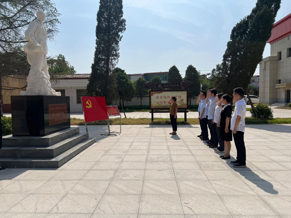 在楊水才同志的塑像前,全體黨員整裝肅立,表達(dá)對(duì)英雄的敬慕之情;面向黨旗,重溫入黨誓詞,回顧莊嚴(yán)承諾。