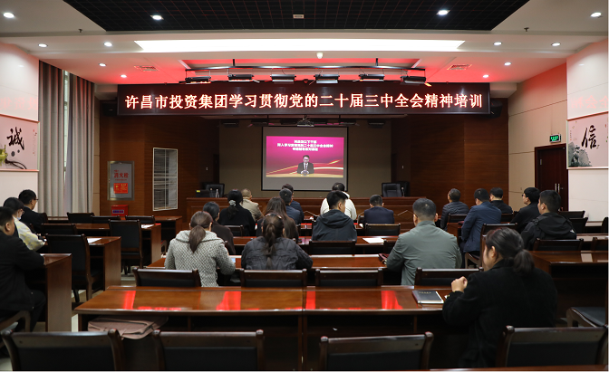 為深入學(xué)習(xí)貫徹黨的二十屆三中全會精神,持續(xù)提升集團(tuán)中層干部的政治意識和理論水平,引導(dǎo)黨員干部準(zhǔn)確把握黨的二十屆三中全會精神實(shí)質(zhì),進(jìn)一步增強(qiáng)落實(shí)全會精神的思想自覺和行動自覺。11月20日,市投資集團(tuán)開展了學(xué)習(xí)貫徹黨的二十屆三中全會精神培訓(xùn),觀看了“深入學(xué)習(xí)貫徹習(xí)近平總書記關(guān)于全面深化改革的一系列新思想、新觀點(diǎn)、新論斷和黨的二十屆三中全會精神”視頻,集團(tuán)共計40余名中層干部參加培訓(xùn)。